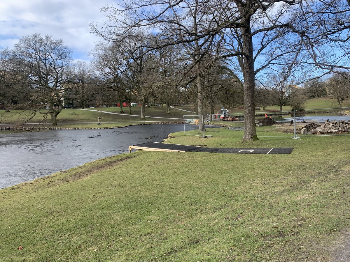Ved den lille sø ved Søauditorierne er der blevet etableret en midlertidig plankeforstærkning, der minder om den permanente instillation ved den nordlige sø. Her kan foreningerne træne i vandet.
