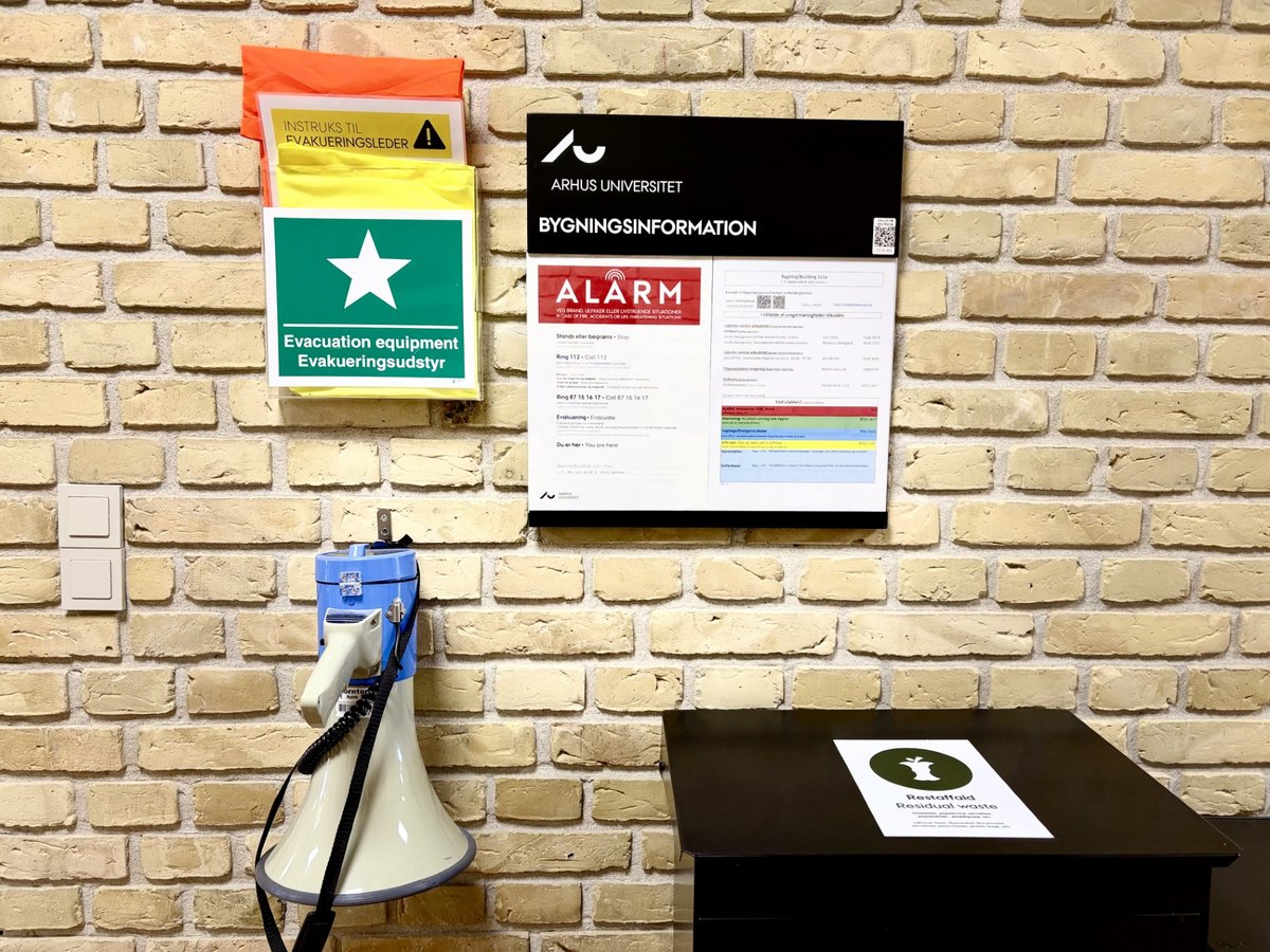 Der er stor forskel på, hvordan medarbejderne på Aarhus Universitet bliver advaret i tilfælde af for eksempel brand. Nogle steder er der topmoderne varslingssystemer. Andre steder skal man råbe til hinanden på tværs ad etager.