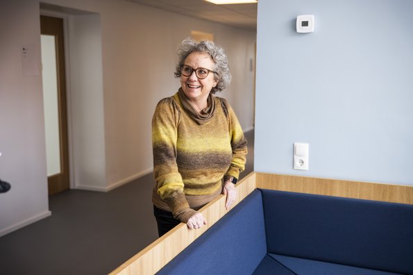 In the stairway, we meet Pernille Kallehave, who is a research adviser at the Department of Management She enthusiastically shows us around the institute's new premises.