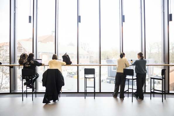 In one of the built-in study niches outside the auditorium, another group of Economics and Business Administration students is having lunch after the lecture. They are also delighted with the new layout, but note that it was difficult to get past each other in the rows of chairs. On the other hand, they noted that the view from the auditorium was beautiful.