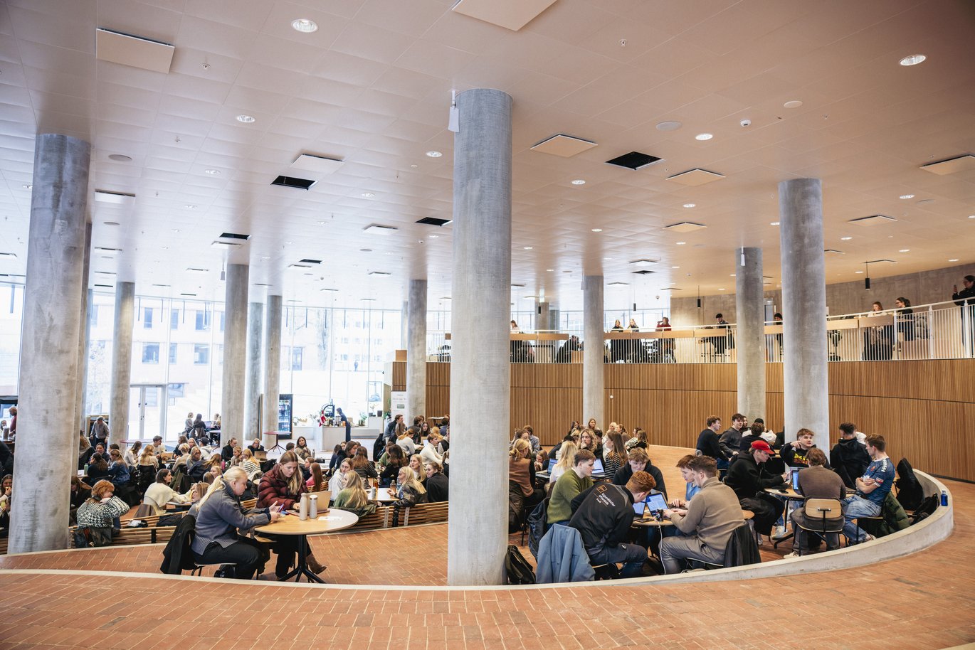“By the study spaces that wind their way along the window front in the City Auditorium, we meet a group of Economics and Business Administration students who have just started their second semester and have come straight from a lecture. They are very pleased with the new campus, which has a "college vibe," notes Daniel Nicolajsen, who has visited a college in Oklahoma, USA.